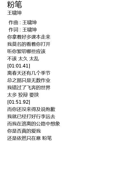 | [00:01.00] | 作词 : 王啸坤 |