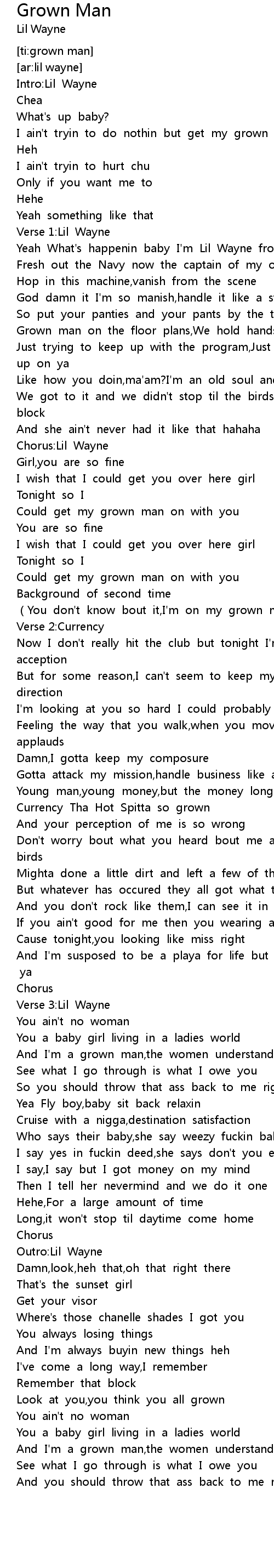 | [03:06.40]Outro:Lil Wayne] | |