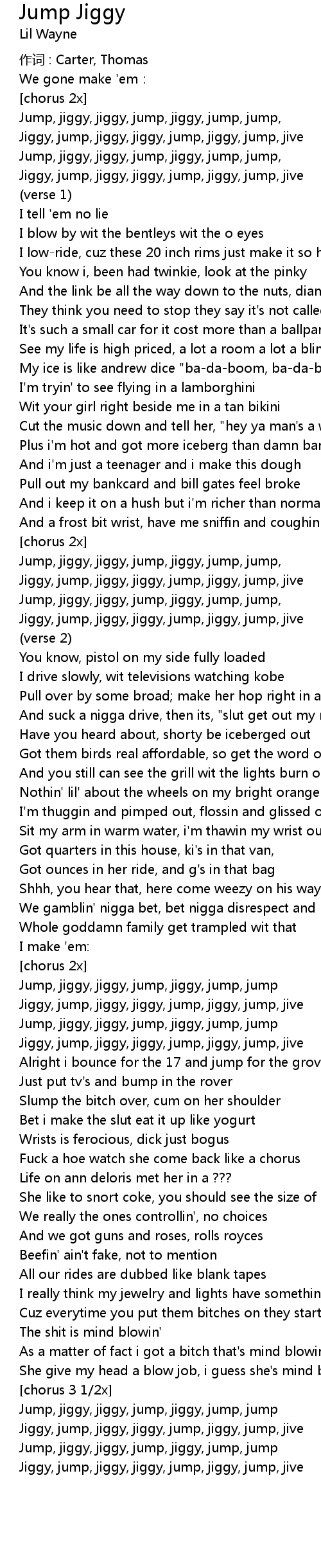| Jump, jiggy, jiggy, jump, jiggy, jump, jump, | |