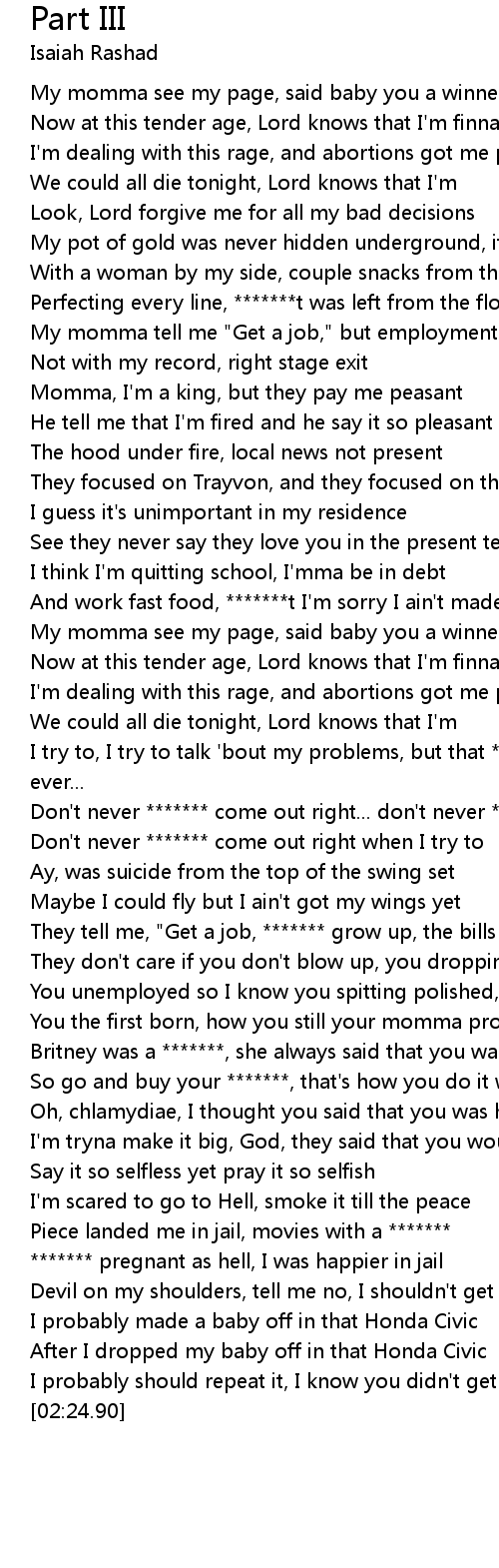 And work fast food, *******t I'm sorry I ain't made it yet |