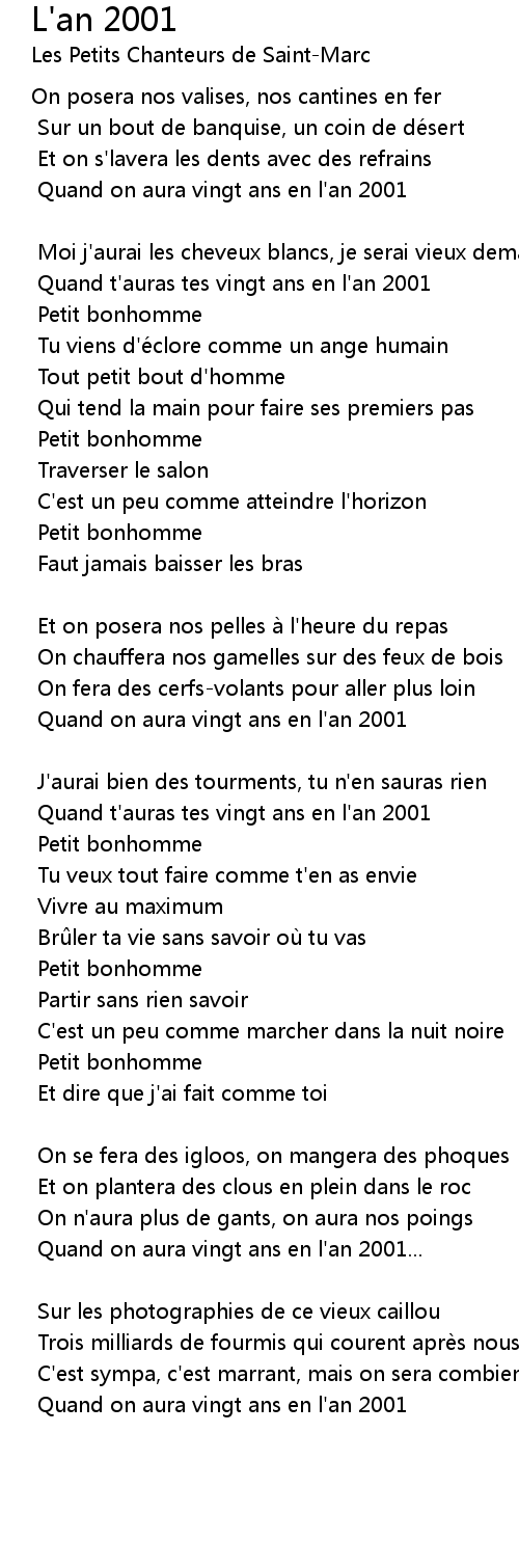 | Quand t' auras tes vingt ans en l' an 2001 | |