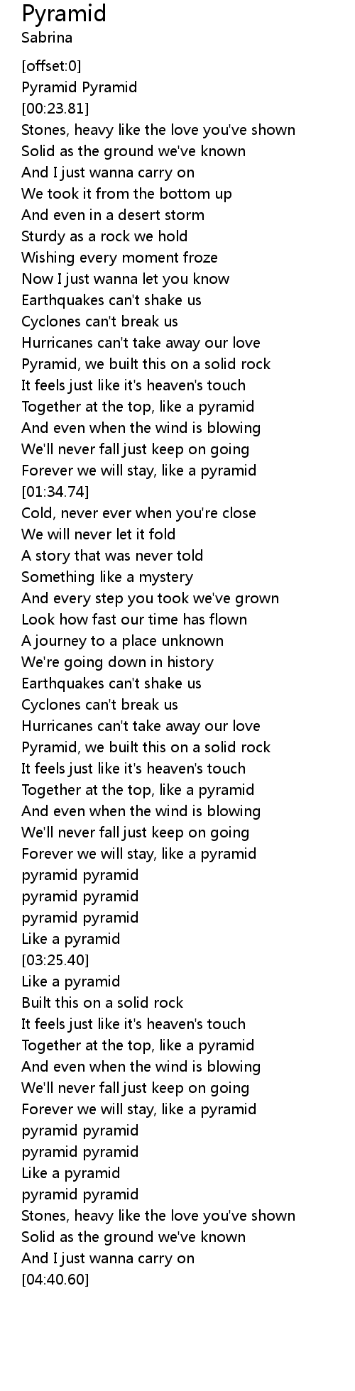 Forever we will stay, like a pyramid |