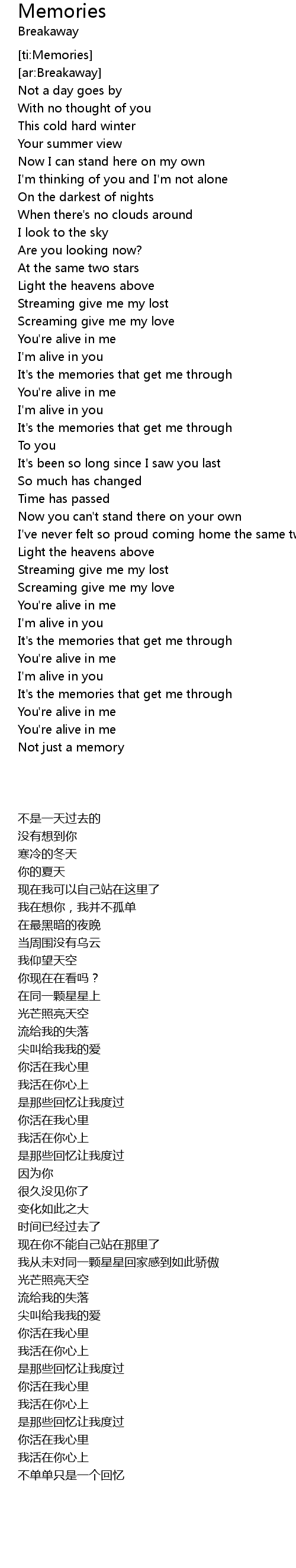 Memories 歌词
