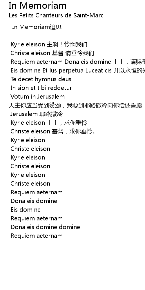 | Requiem aeternam Dona eis domine shàng zhǔ, qǐng cì yǔ tā men yǒng héng de ān xī ba | |