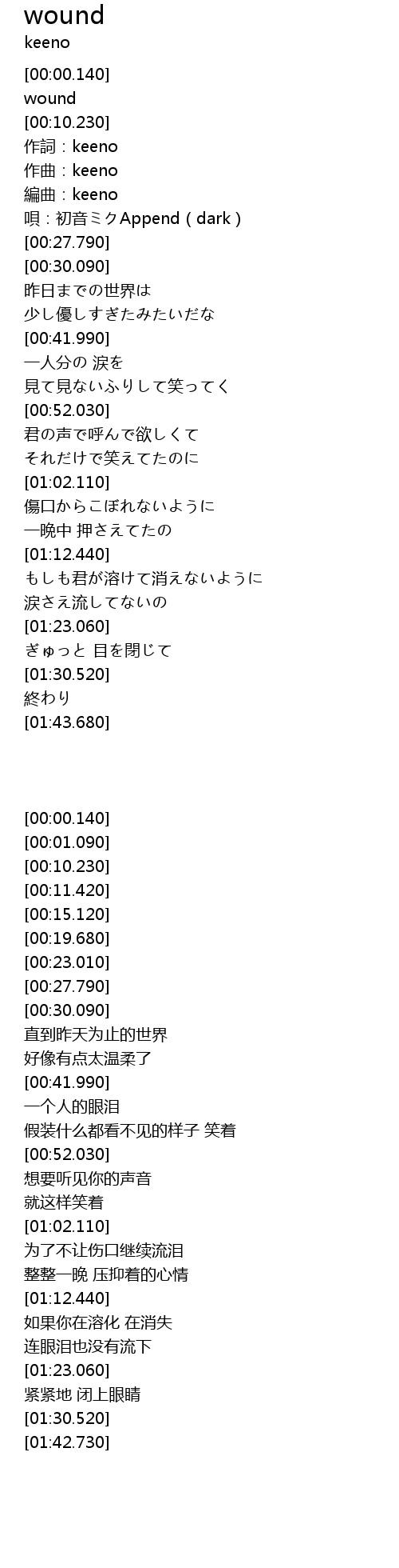 | [00:15.120] | 作曲:keeno |