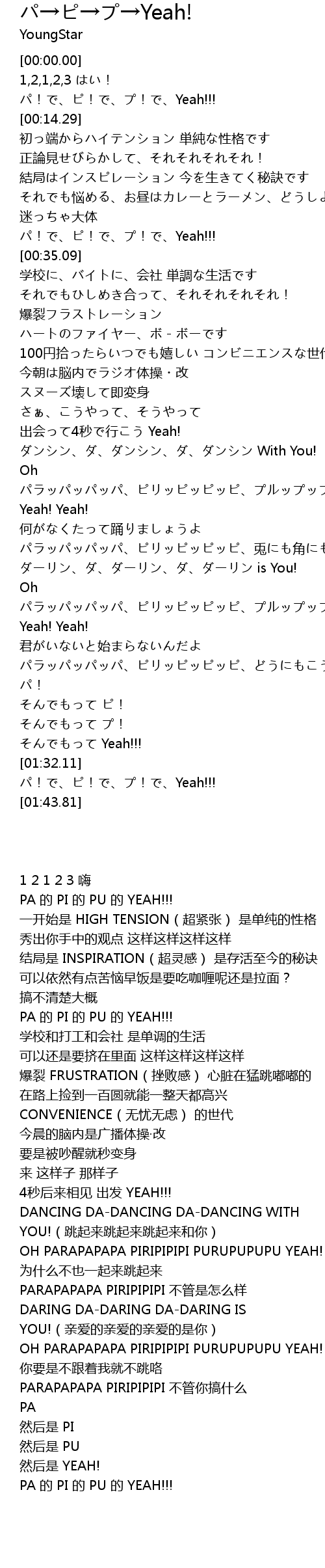 | [00:29.53] | PA 的 PI 的 PU 的 YEAH!!! |