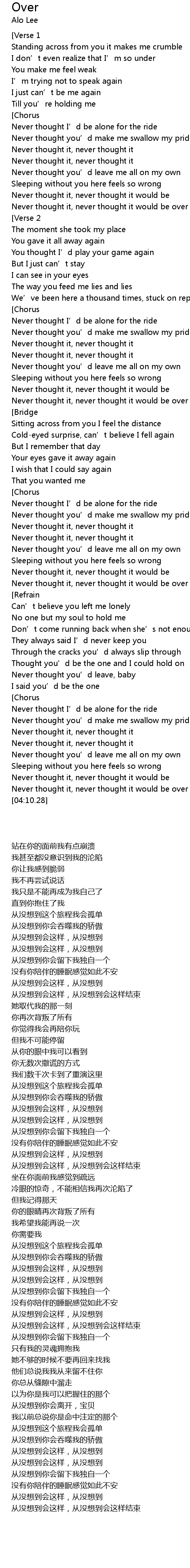 | [01:54.39] | Never thought it, never thought it would be over |