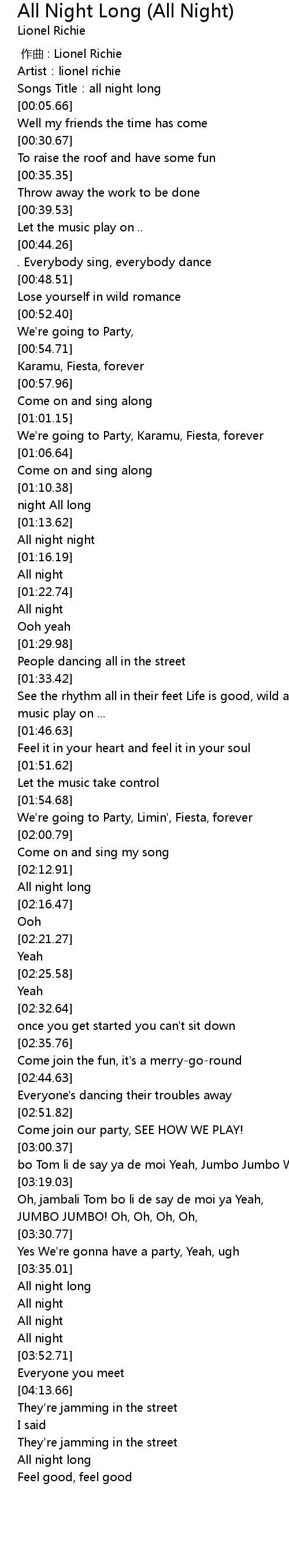 | [00:03.11] | Songs Title: all night long |