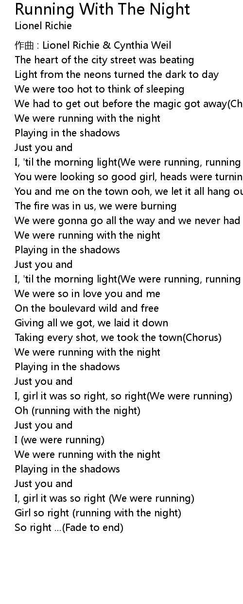 | Oh running with the night | |