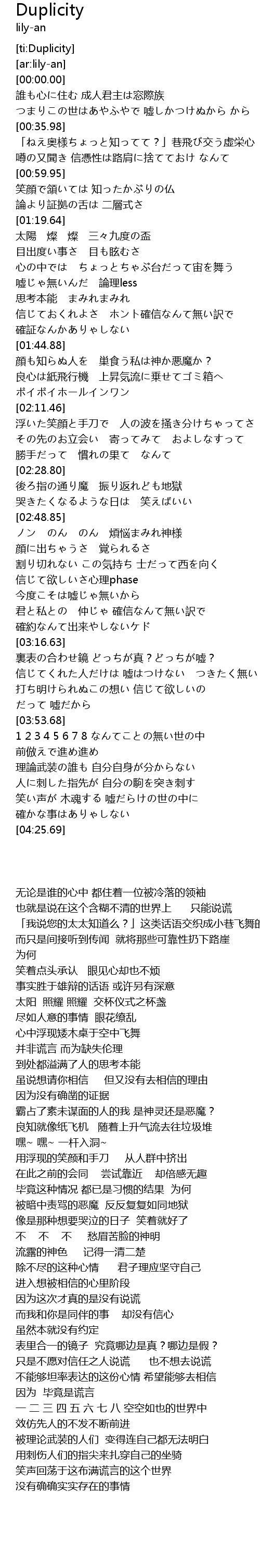 | [03:25.39] | 裏表の合わせ鏡 どっちが真?どっちが嘘? |