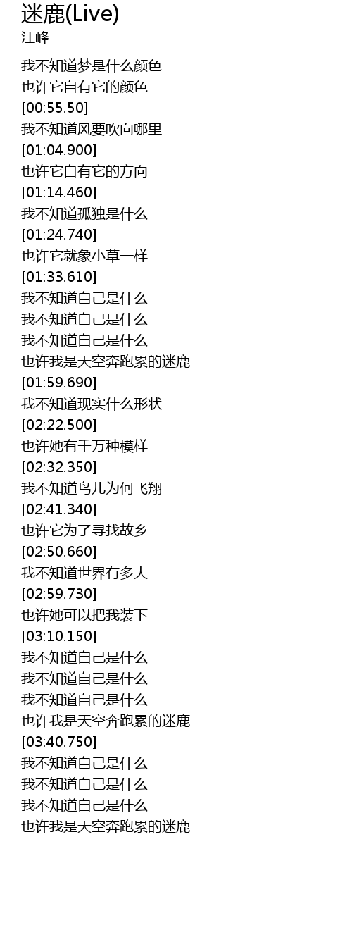 | [01:49.759] | 也许我是天空奔跑累的迷鹿 |