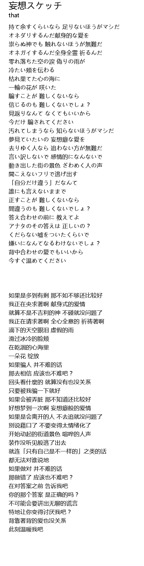 | [01:40.02] | 好想梦到一次啊 妄想癖般的爱情 |