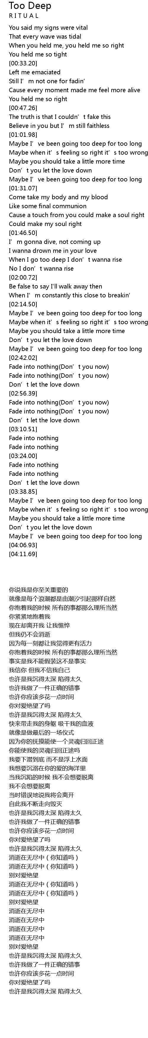 | [02:37.27] | Maybe I' ve been going too deep for too long |