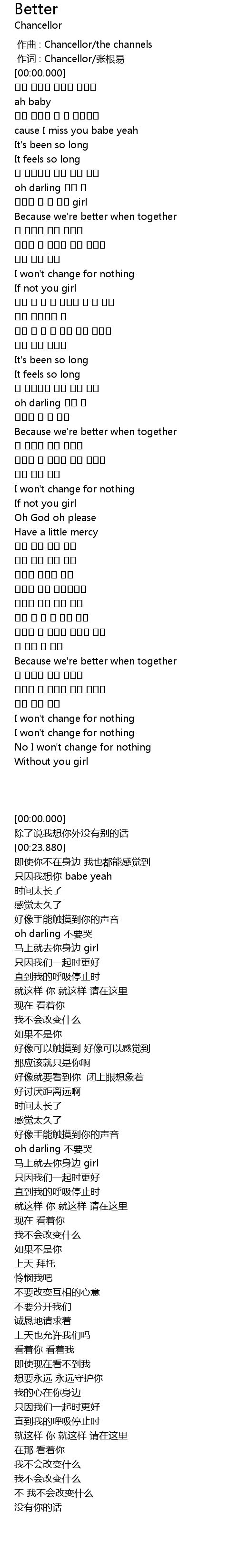 | [00:00.00] | 作词 : Chancellor/张根易 |