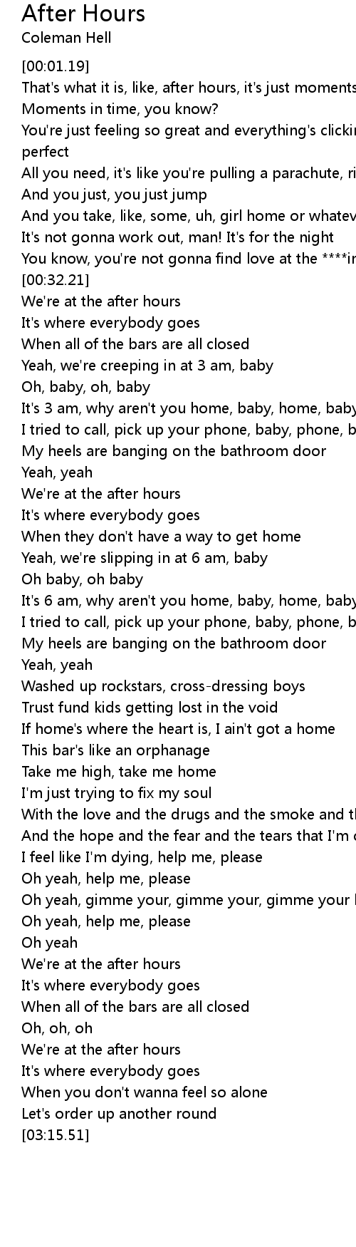 That's what it is, like, after hours, it's just moments |