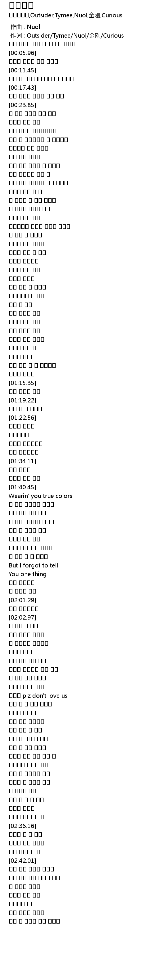 | [00:00.16] | 作词 : Outsider/Tymee/Nuol/金刚/Curious |