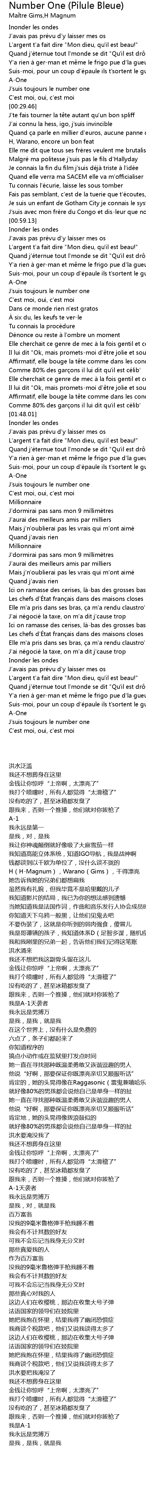 | 歌曲 | Number One (Pilule Bleue) |