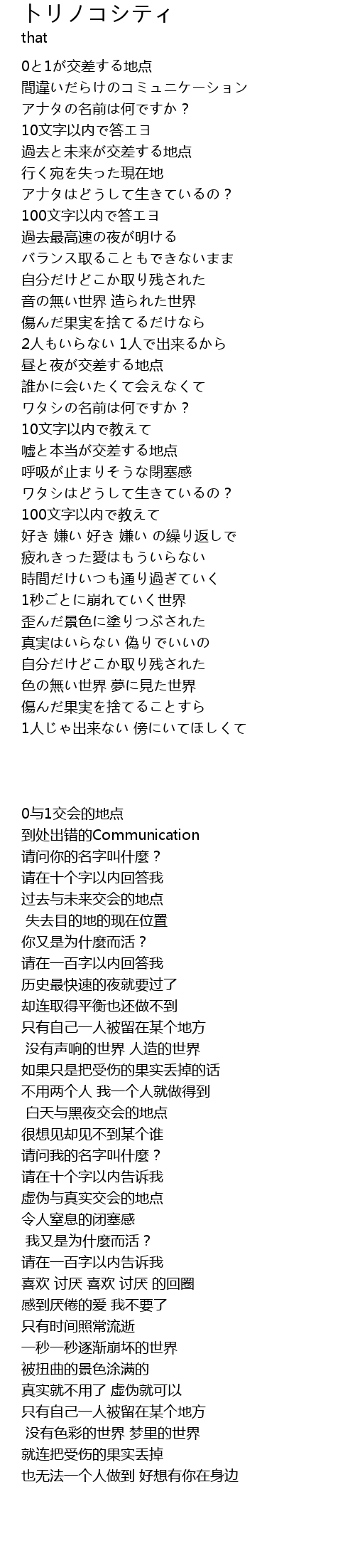 | [01:55.14] | 虚伪与真实交会的地点 |