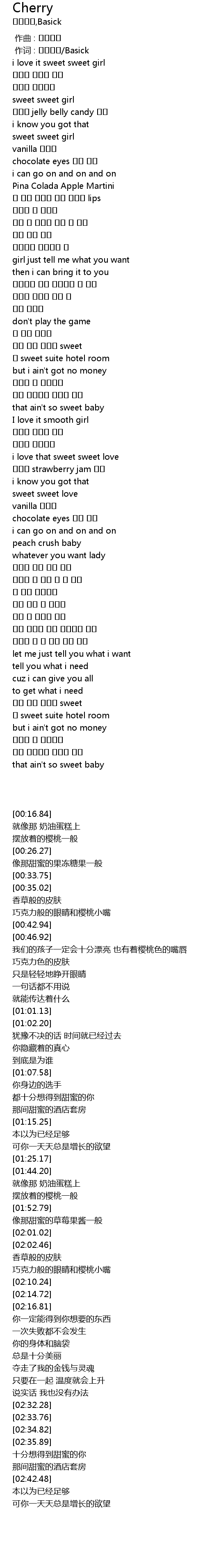 | [02:07.20] | 巧克力般的眼睛和樱桃小嘴 |