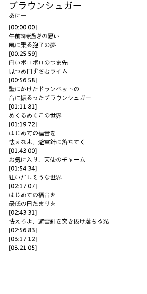 | [01:06.03] | 音に振るったブラウンシュガー |
