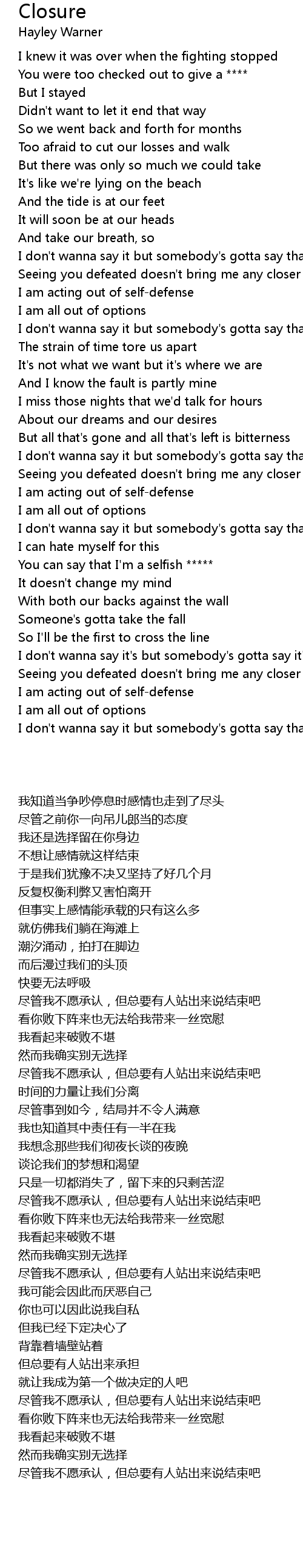 I don't wanna say it but somebody's gotta say that it's over |