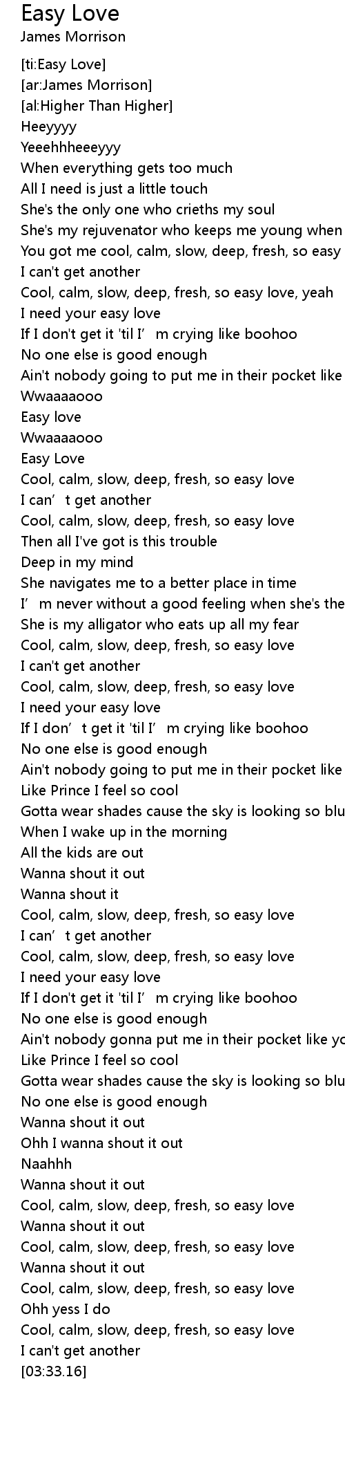 | [03:27.83] | Cool, calm, slow, deep, fresh, so easy love |