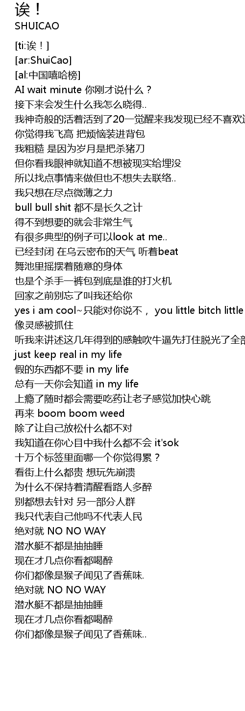 | [01:01.94] | yes i am cool zhi neng dui ni shuo bu, you little bitch little bitch xiang ling gan bei zhua zhu |