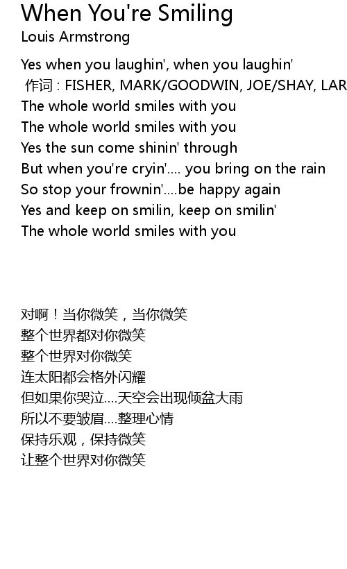 | [01:33.640] | Yes and keep on smilin, keep on smilin' |