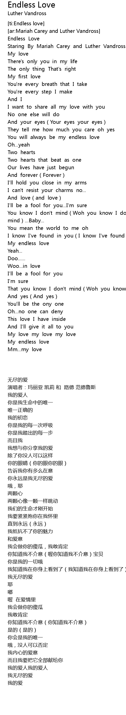 | [00:00.13] | Endless Love |