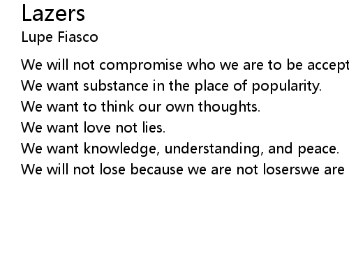 | We will not lose because we are not loserswe are lazers. |