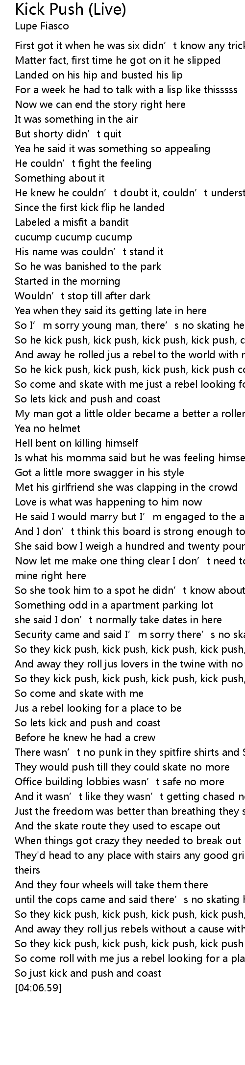| [02:37.83] | So they kick push, kick push, kick push, kick push, coast |