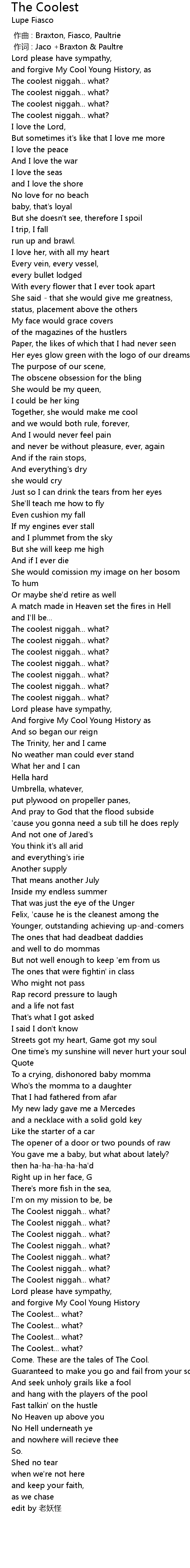| [03:56.14] | The Coolest niggah... what? |