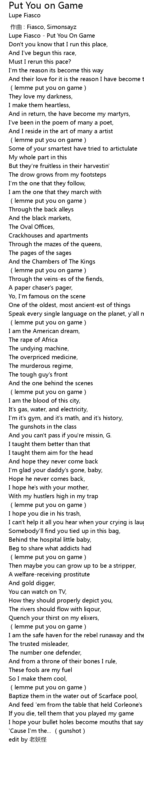 | [00:02.35] | Lupe Fiasco Put You On Game |