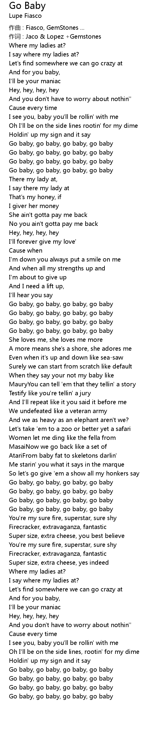 | Go baby, go baby, go baby, go baby | |