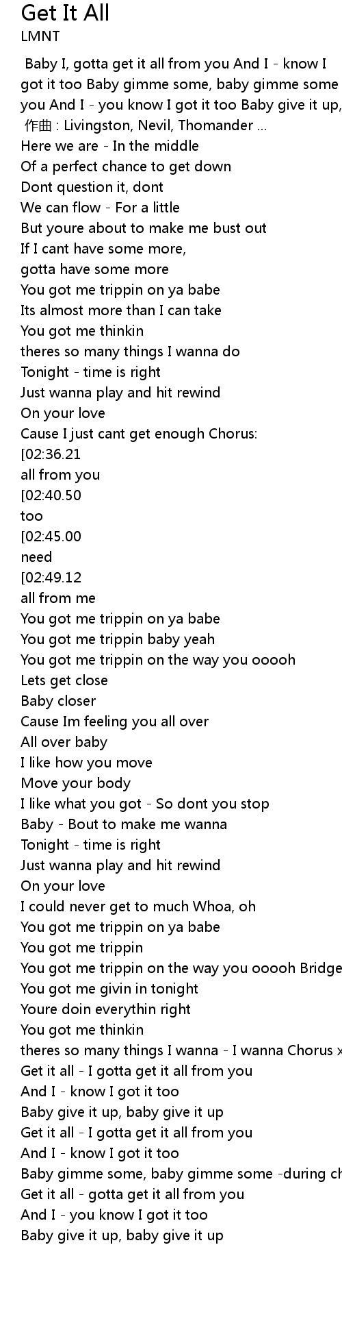 | [03:20.93] | Get it all I gotta get it all from you |
