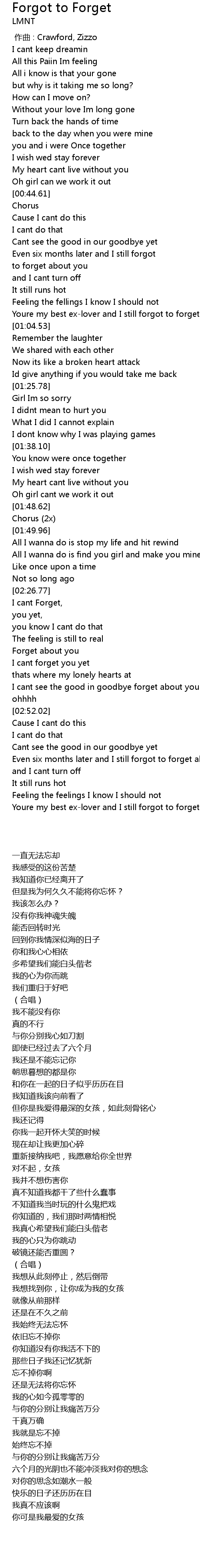 | [01:03.33] | Youre my best exlover and I still forgot to forget about you |