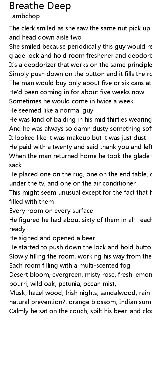 She smiled because periodically this guy would return with a basket full of glade lock and hold room freshener and deodorizer |