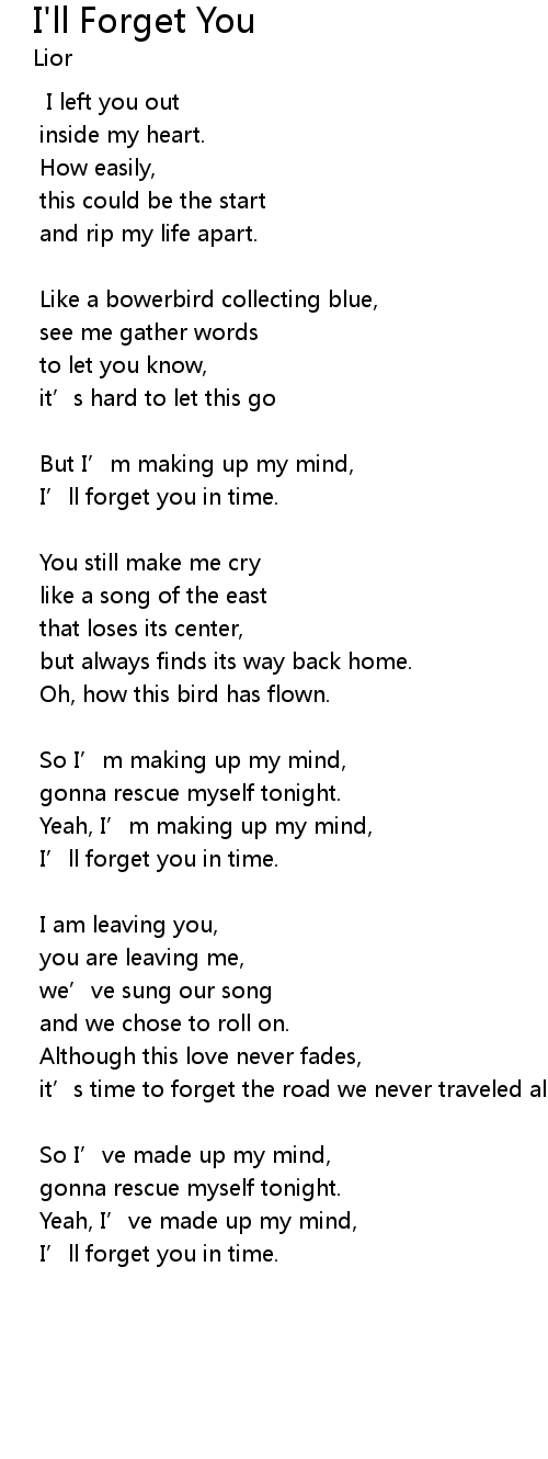 | I’ll forget you in time. |