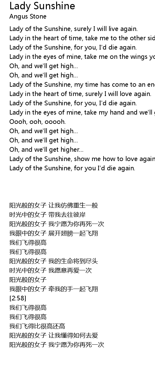 Lady of the Sunshine, for you, I'd die again. |