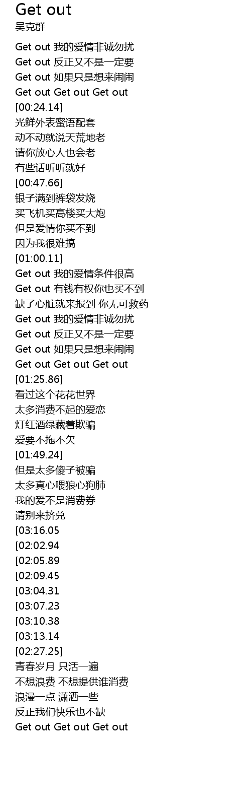 | [03:31.24][03:07.23][02:17.94] | Get out 反正又不是一定要 |