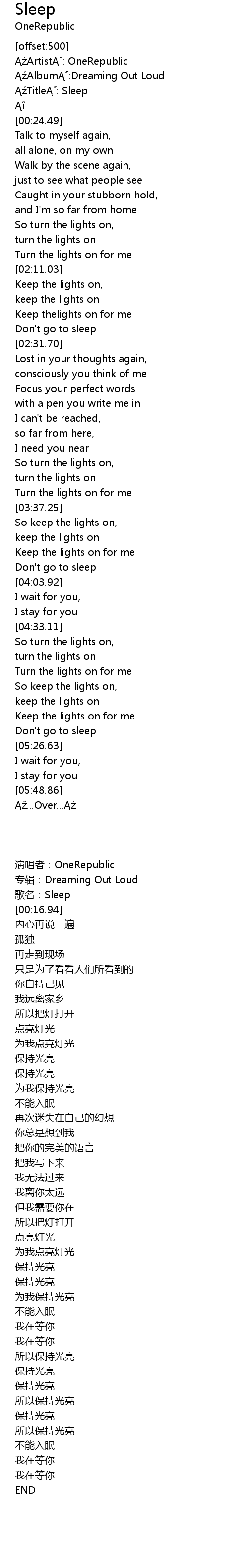 | [00:08.19] | ĄźTitleĄ˝: Sleep |