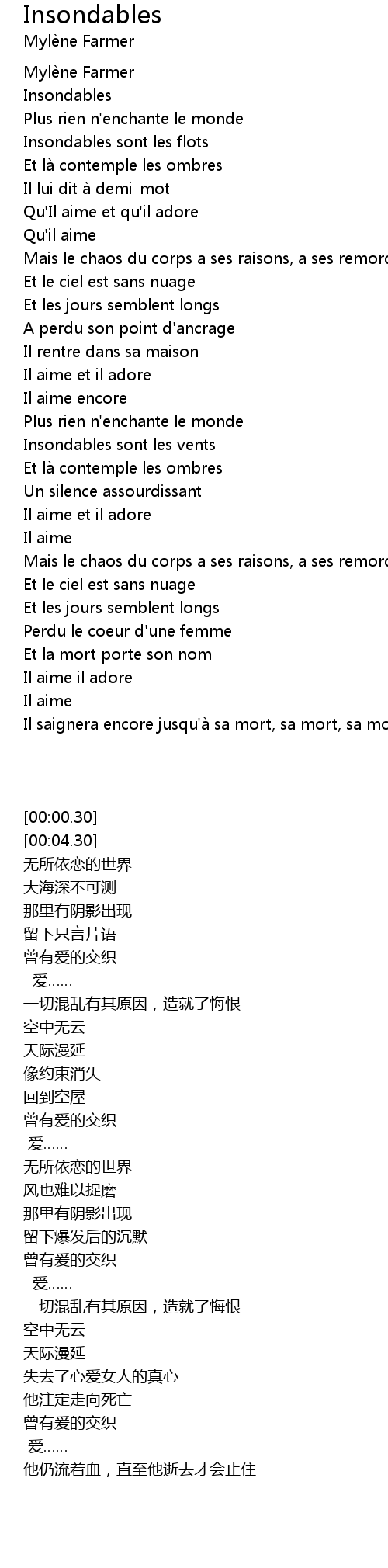 | [00:33.21] | Mais le chaos du corps a ses raisons, a ses remords |