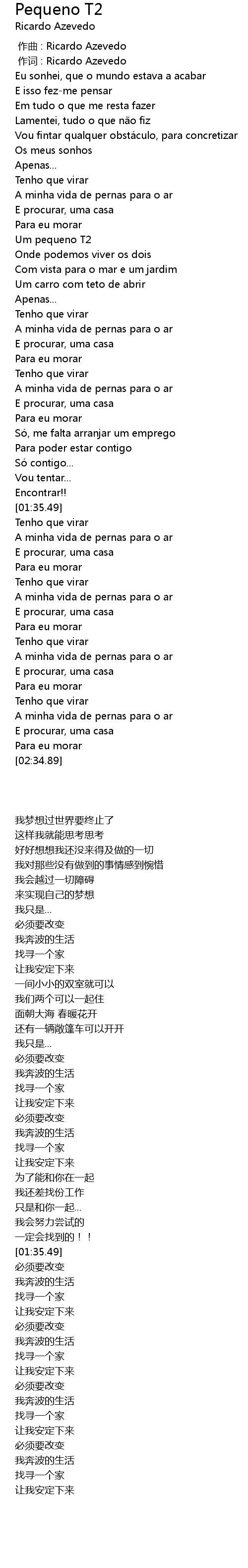 | [00:00.01] | 作词 : Ricardo Azevedo |