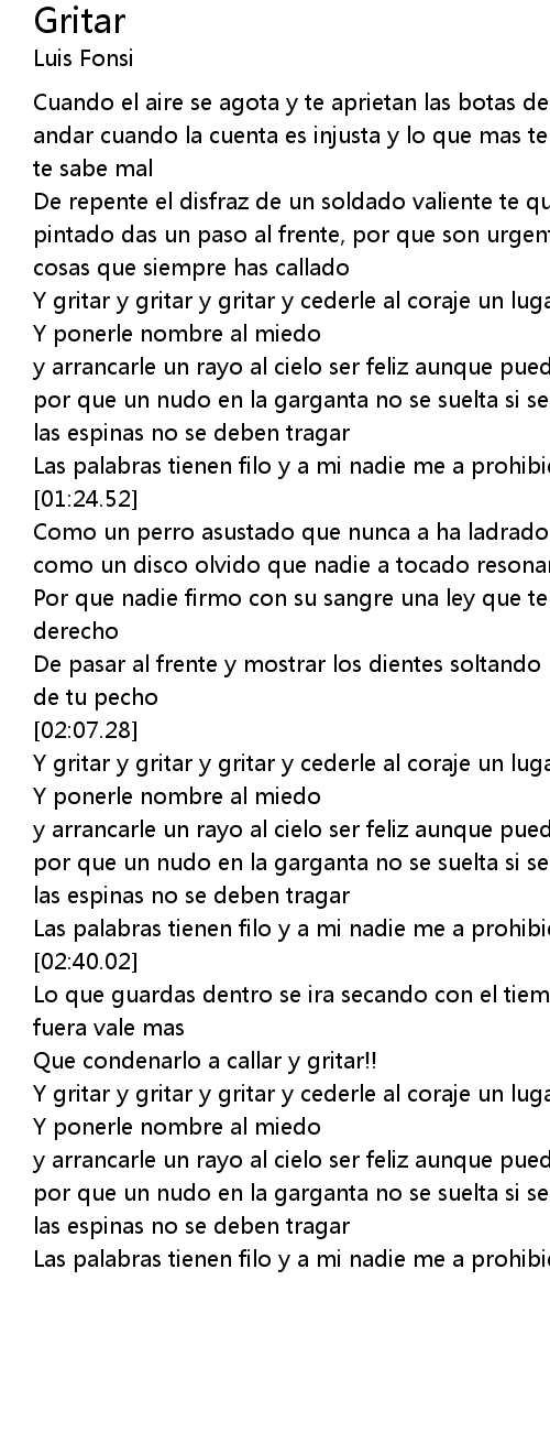 Y gritar y gritar y gritar y cederle al coraje un lugar |