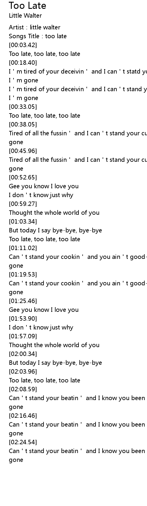 | [02:26.42] | Can t stand your beatin and I know you been cheatin, I m gone |