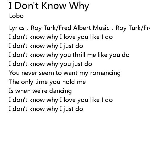 | I don' t know why I love you like I do | |