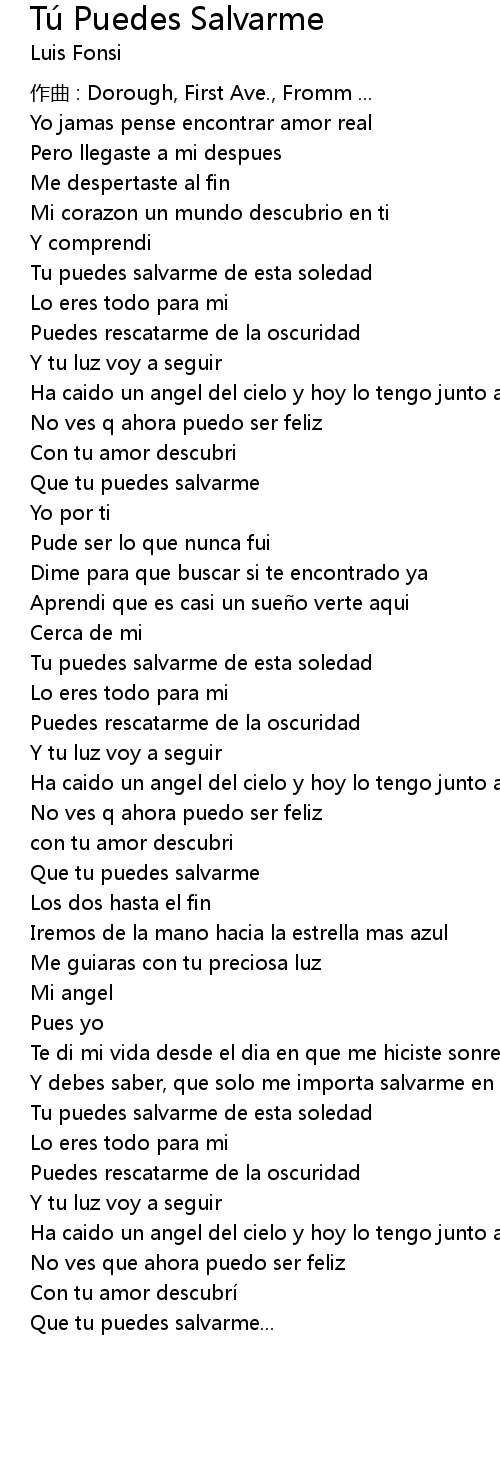 | Y debes saber, que solo me importa salvarme en tu amor | |