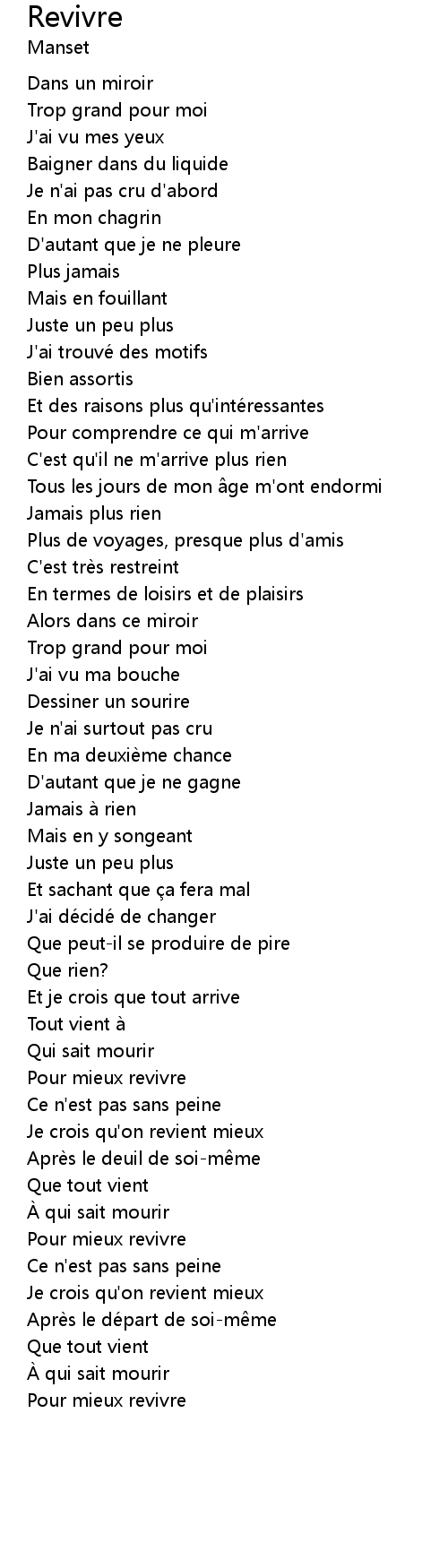 | Pour mieux revivre | |