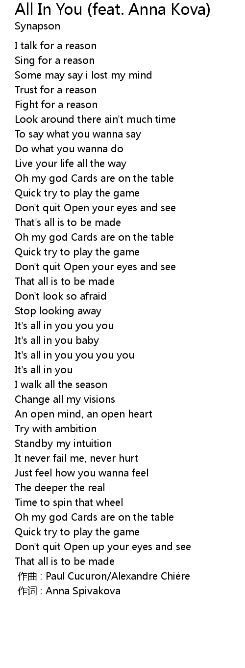 | 歌曲 | All In You (feat. Anna Kova) |