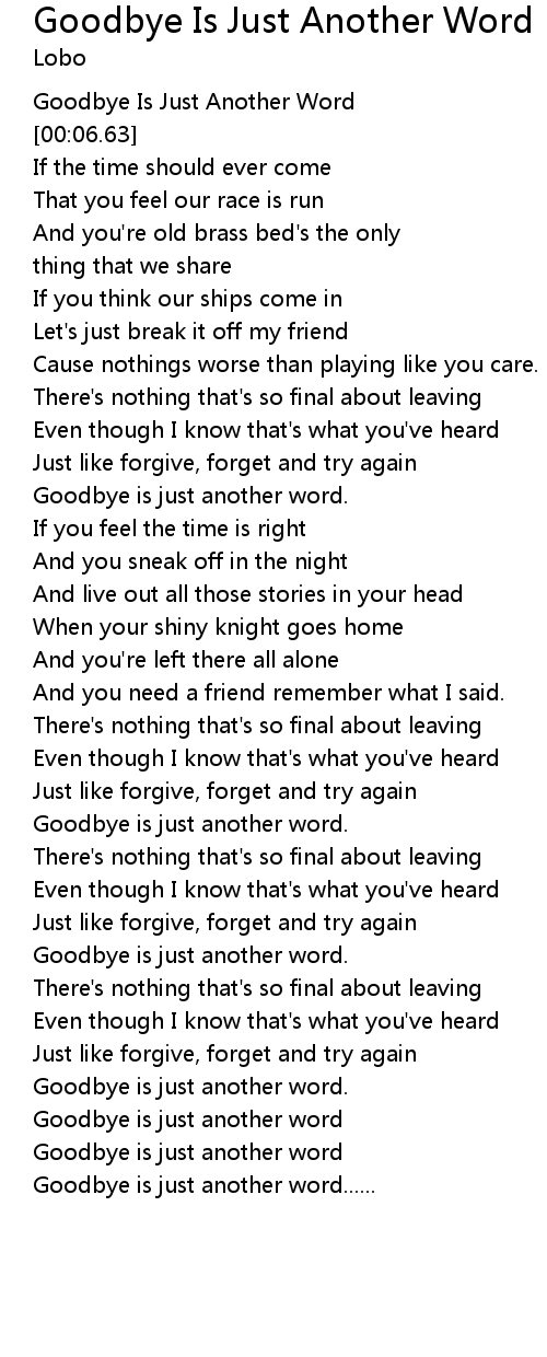 | [00:58.21] | Goodbye is just another word. |